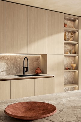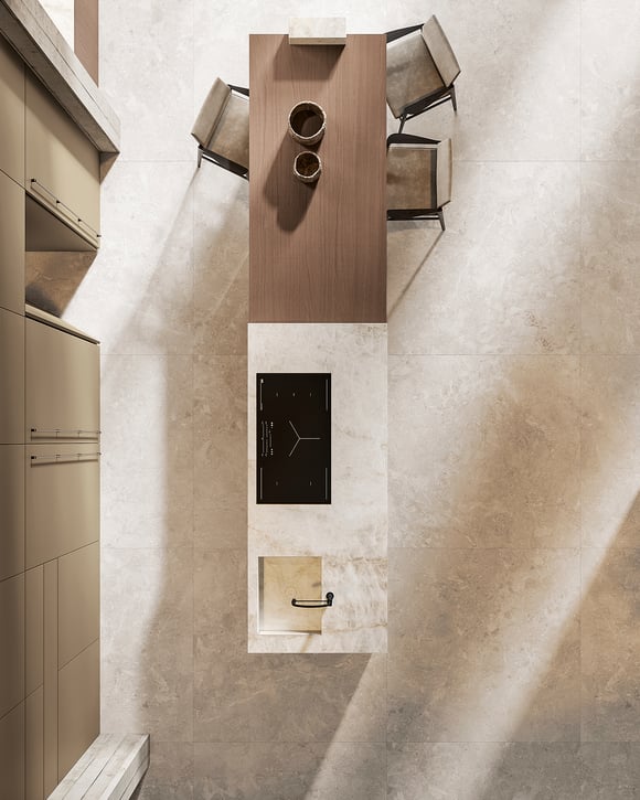 Materiali puri e senza tempo. Superfici che lasciano spazio alla luce e accolgono la vita con naturalezza.